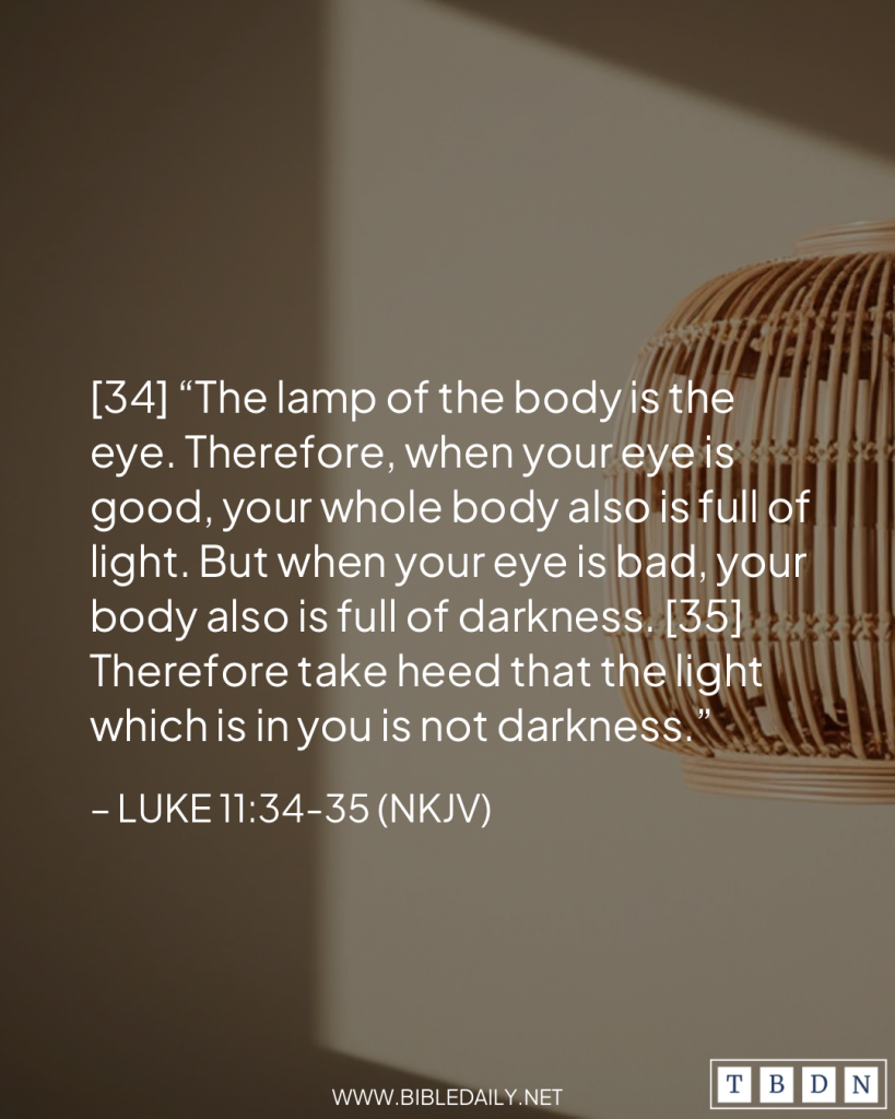 [34] “The lamp of the body is the eye. Therefore, when your eye is good, your whole body also is full of light. But when your eye is bad, your body also is full of darkness. [35] Therefore take heed that the light which is in you is not darkness.” – Luke 11:34-35 (NKJV)